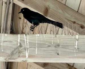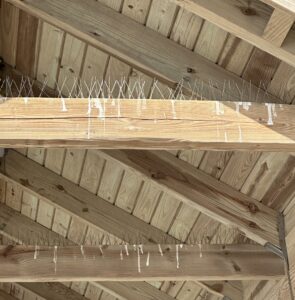 These thin metal spikes worked very well to keep the many pigeons from roosting on these rafters.