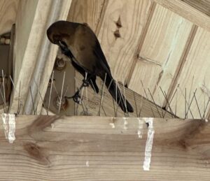 But these stakes did not slow the Boat-tailed Grackles down one bit – they even were comfortable enough to preen!  Human heads were NOT safe from bird droppings!