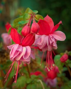 If planting Fuchsias into the ground, water deeply twice a week for about a month until they are established. After that, as long as they are not in direct sun, they should be fine. If there is a dry period, check them – they may need watered.