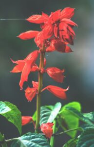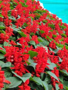 Annual red Salvia planted en masse. Planted in this way, Salvia is a hummingbird magnet.  If you keep the faded flowers cut off, they will keep blooming until frost. Photo by Shankar Kandregula on Unsplash.