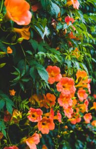 This is also a vine that can be grown on a dead tree – it will use the tree as its natural support. Once established, as it grows, I would recommend completely removing the lower branches (those within 3-4 feet of the ground). Always check the area around the base of the stem/trunk and cut out any other stems that emerge from the ground. Other pruning will not be necessary as the vine will confirm to the branching pattern of the tree. The downside of this is you may not be able to deadhead – the vine could get too big and tall and it would not be safe. Just know you may have volunteer Trumpet Vines in your yard and garden each spring that you will want to remove. Also keep in mind the dead tree must be in full sun for the best bloom.
